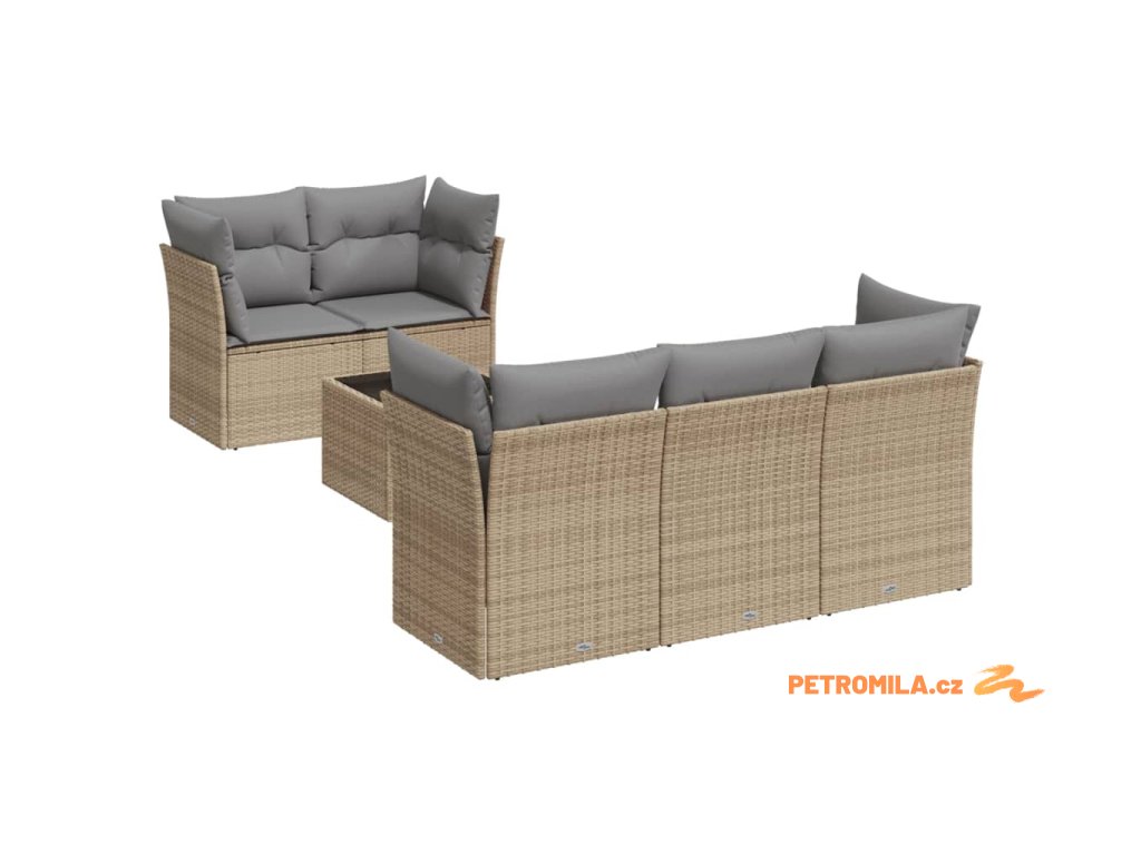Sada zahradních pohovek s polštářem 7 pcs Béžová Poly ratan