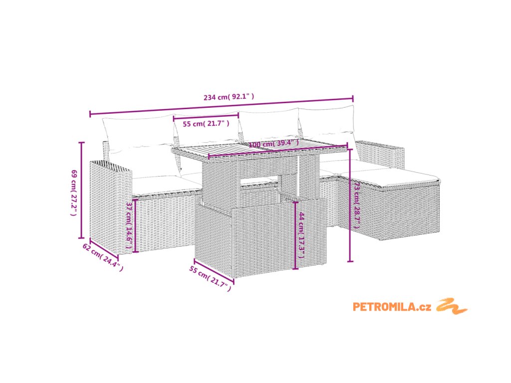 Tato zahradní sedací souprava je dokonalým doplňkem vaší zahrady, terasy nebo dvorku a poskytne vám pohodlné a příjemné místo, kde si můžete povídat s rodinou a přáteli nebo jen tak odpočívat a užívat si pobyt venku.
