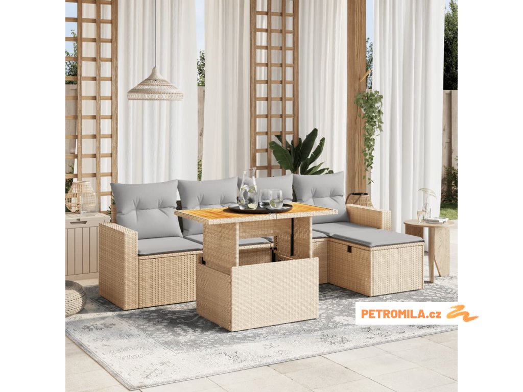 6dílná zahradní sedací souprava s poduškami béžová polyratan