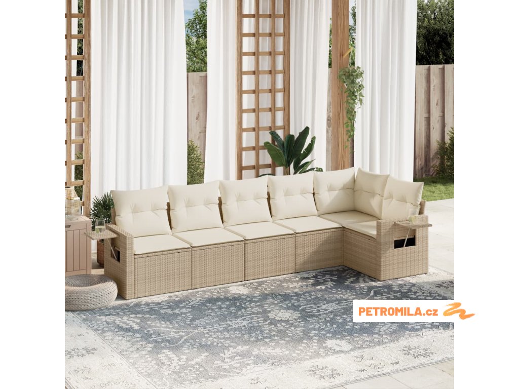 6dílná zahradní sedací souprava s poduškami béžová polyratan