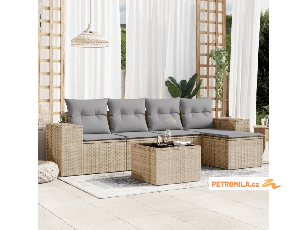 6dílná zahradní sedací souprava s poduškami béžová polyratan