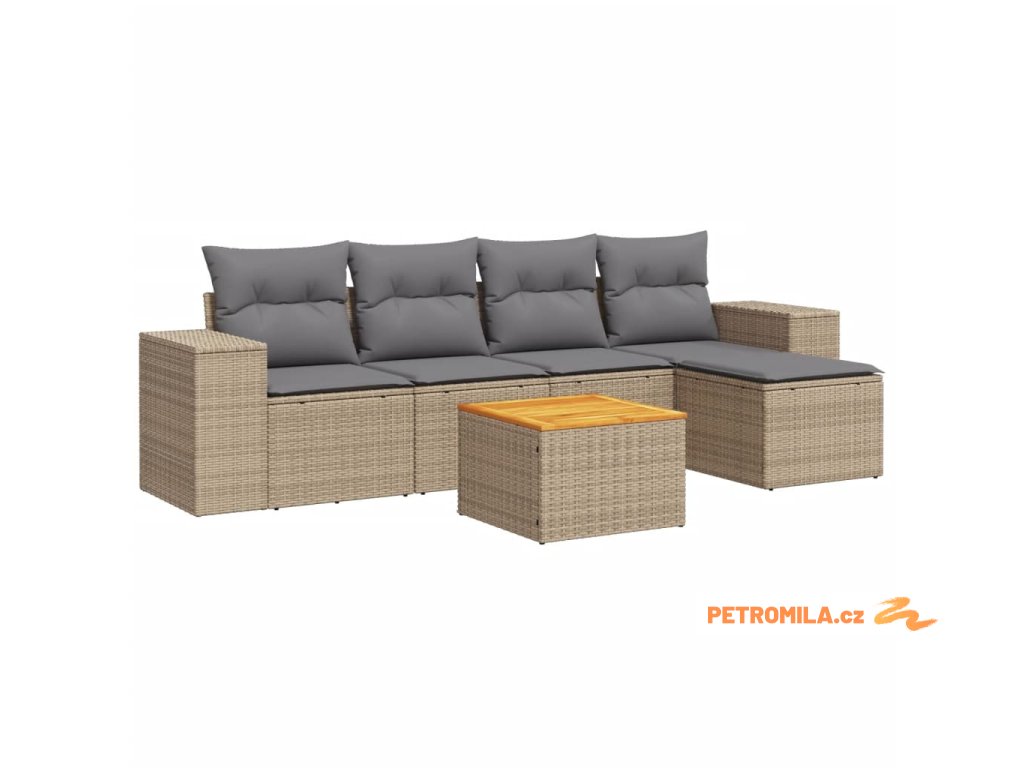 6dílná zahradní sedací souprava s poduškami béžová polyratan