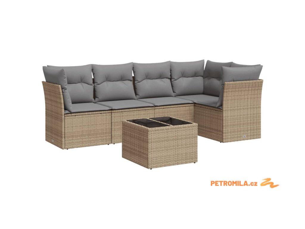 6dílná zahradní sedací souprava s poduškami béžová polyratan