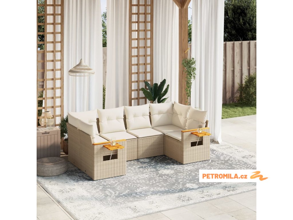 6dílná zahradní sedací souprava s poduškami béžová polyratan
