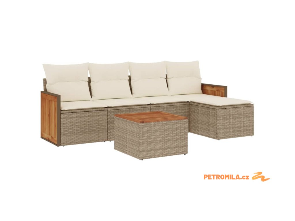 6dílná zahradní sedací souprava s poduškami béžová polyratan