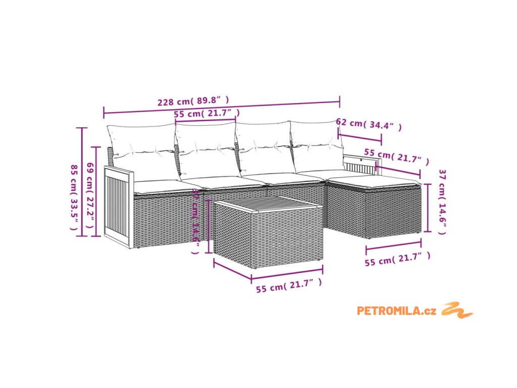 Tato zahradní sedací souprava je dokonalým doplňkem vaší zahrady, terasy nebo dvorku a poskytne vám pohodlné a příjemné místo, kde si můžete povídat s rodinou a přáteli nebo jen tak odpočívat a užívat si pobyt venku.
