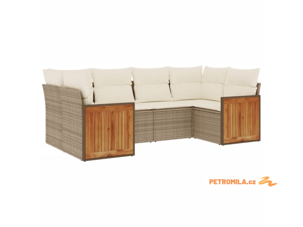 Sada zahradních pohovek s polštářem 6 pcs Béžová Poly ratan