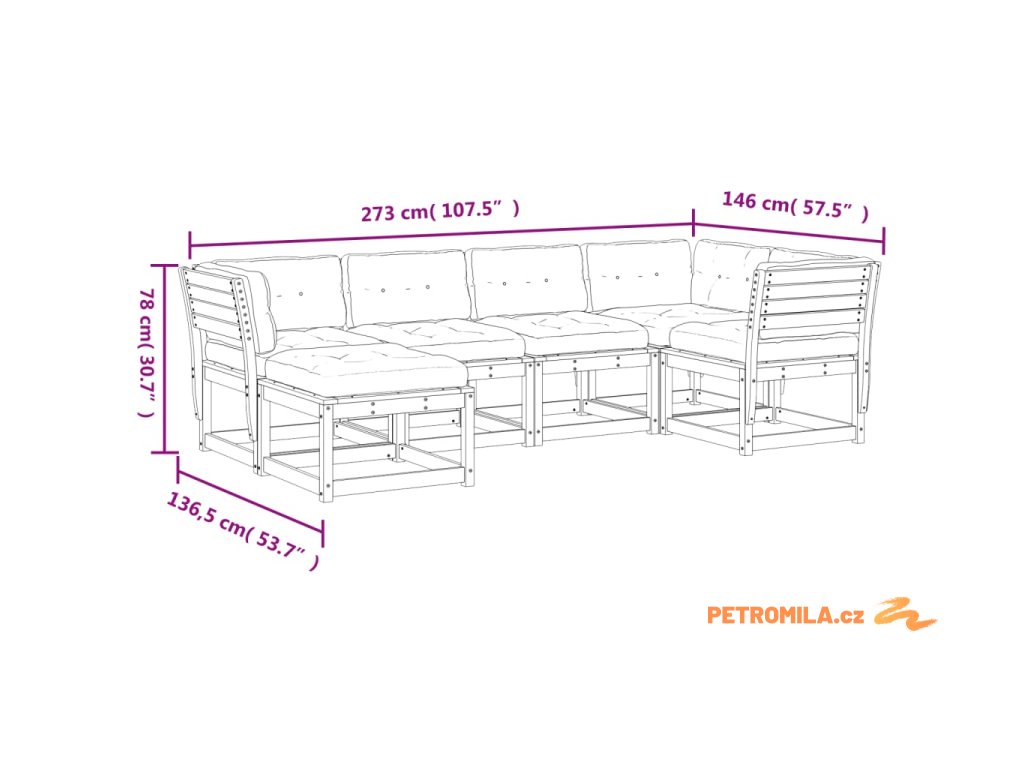 6dílná zahradní sedací souprava s poduškami bílá masiv borovice