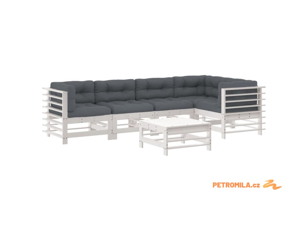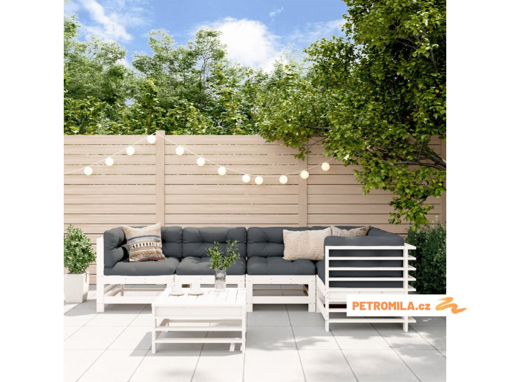 6dílná zahradní sedací souprava s poduškami bílá masivní dřevo