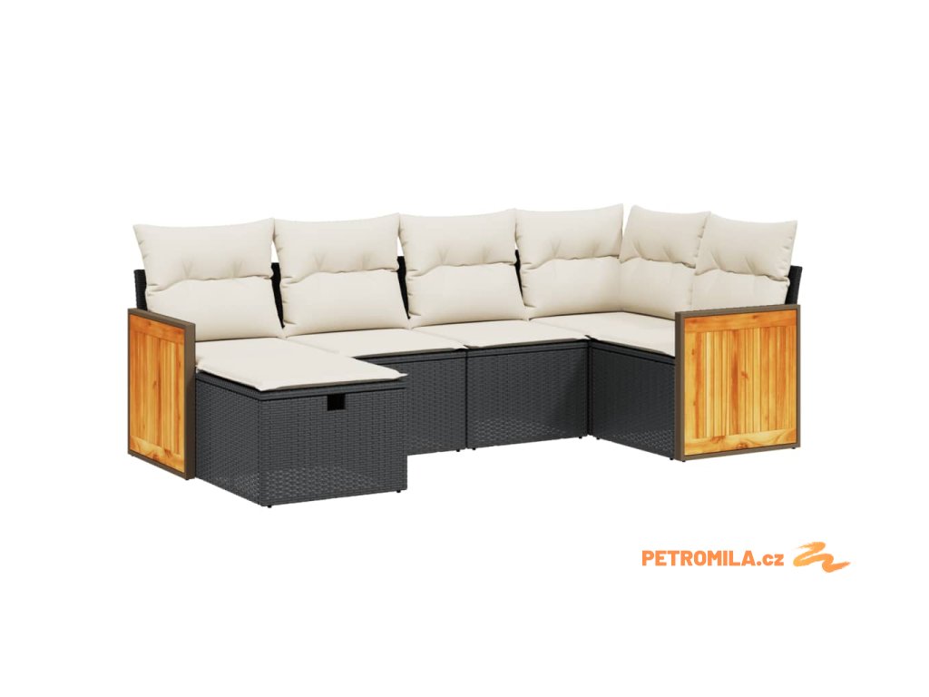 6dílná zahradní sedací souprava s poduškami černá polyratan