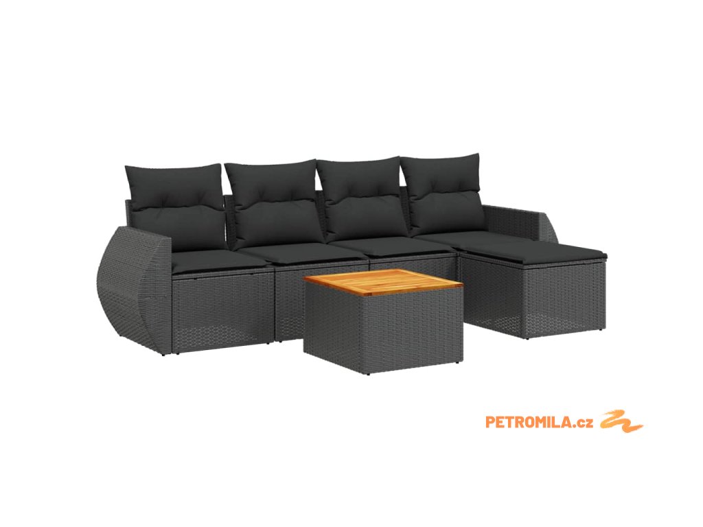 6dílná zahradní sedací souprava s poduškami černá polyratan