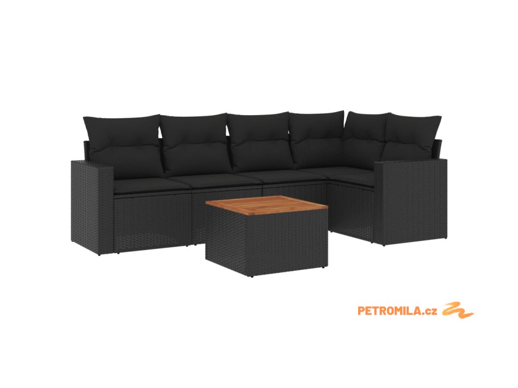 6dílná zahradní sedací souprava s poduškami černá polyratan