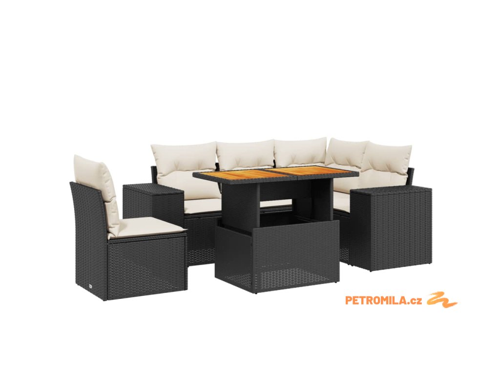 6dílná zahradní sedací souprava s poduškami černá polyratan