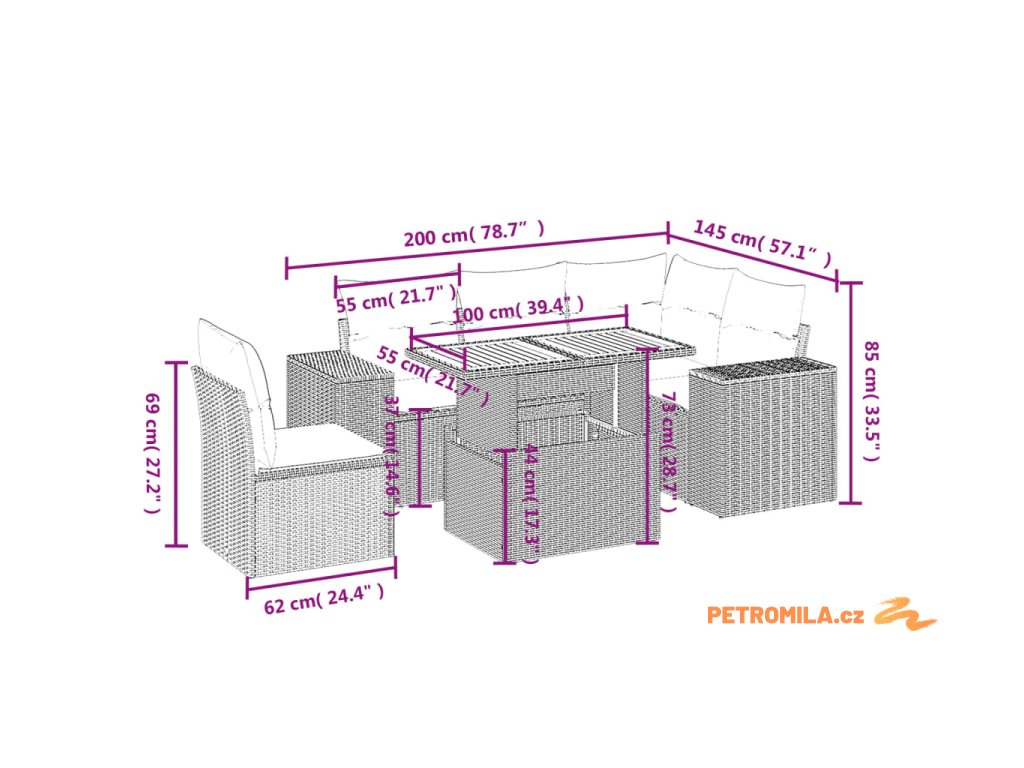 Tato zahradní sedací souprava je dokonalým doplňkem vaší zahrady, terasy nebo dvorku a poskytne vám pohodlné a příjemné místo, kde si můžete povídat s rodinou a přáteli nebo jen tak odpočívat a užívat si pobyt venku.