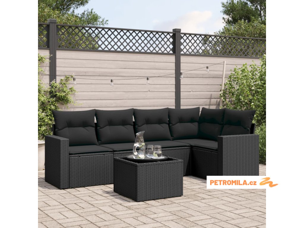 6dílná zahradní sedací souprava s poduškami černá polyratan