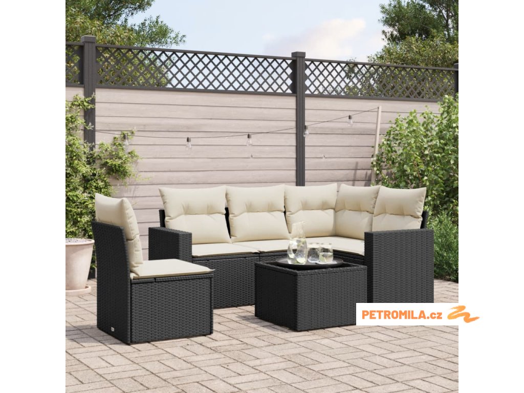 6dílná zahradní sedací souprava s poduškami černá polyratan