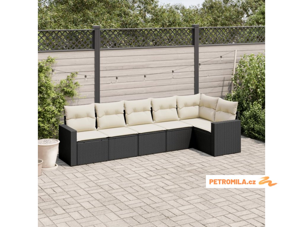 6dílná zahradní sedací souprava s poduškami černá polyratan