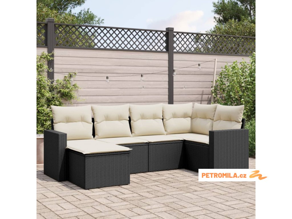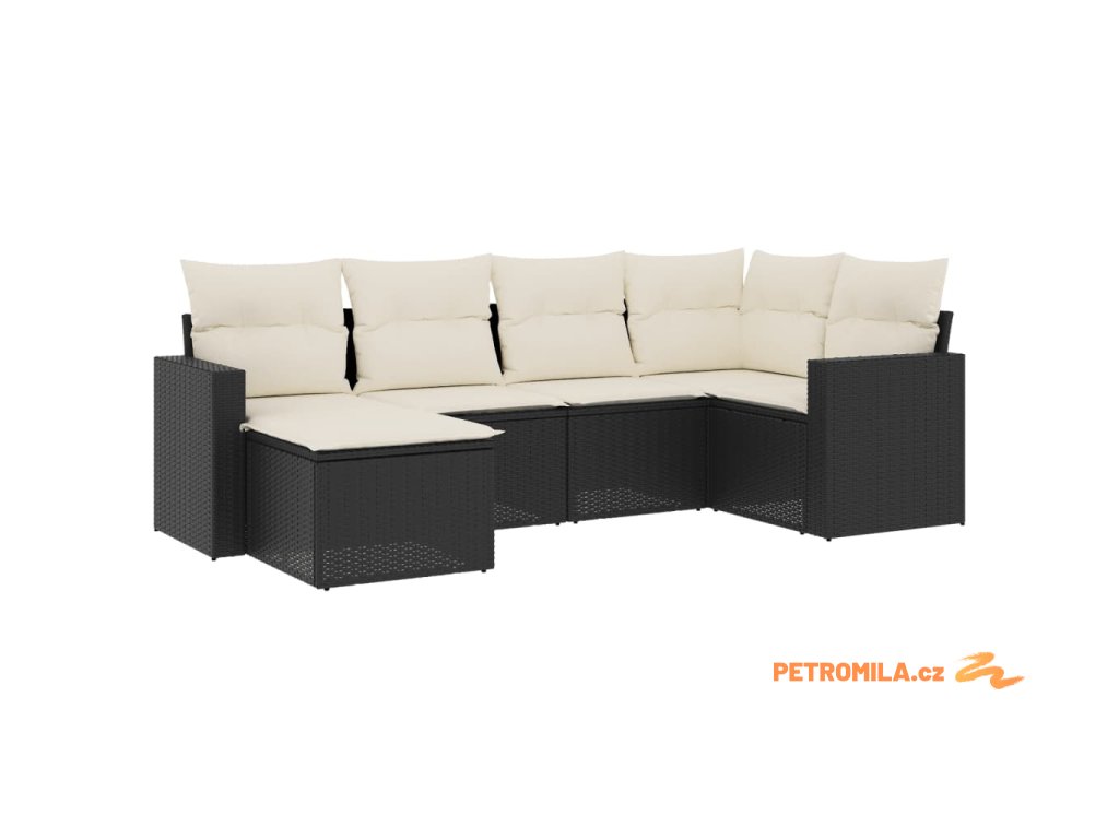 6dílná zahradní sedací souprava s poduškami černá polyratan