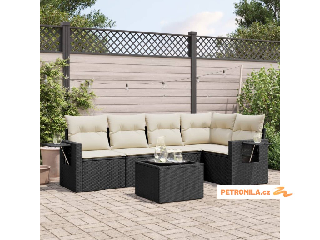 6dílná zahradní sedací souprava s poduškami černá polyratan