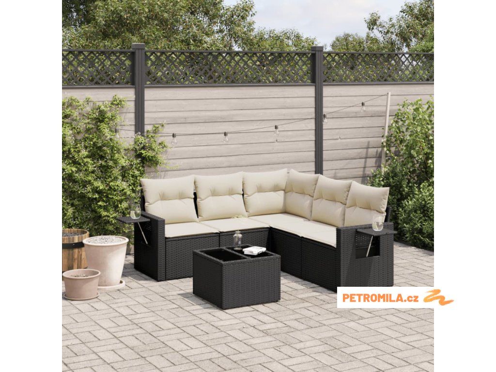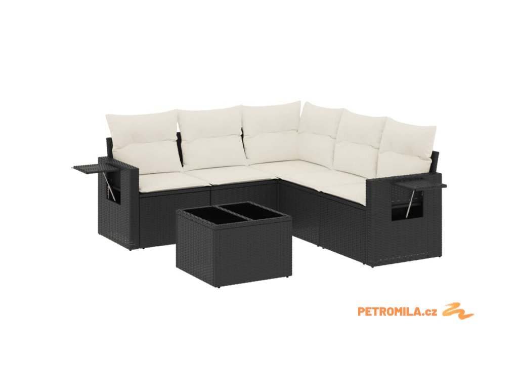 6dílná zahradní sedací souprava s poduškami černá polyratan