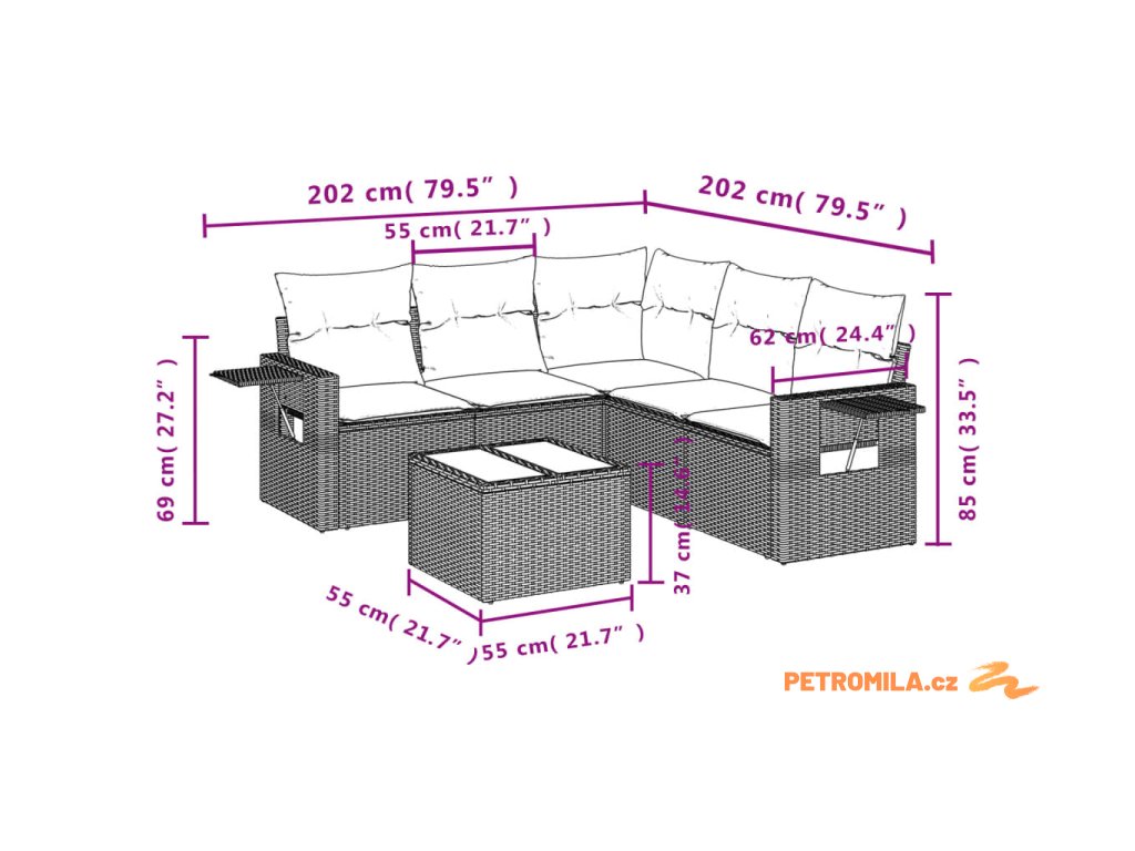 Tato zahradní sedací souprava je dokonalým doplňkem vaší zahrady, terasy nebo dvorku a poskytne vám pohodlné a příjemné místo, kde si můžete povídat s rodinou a přáteli nebo jen tak odpočívat a užívat si pobyt venku.