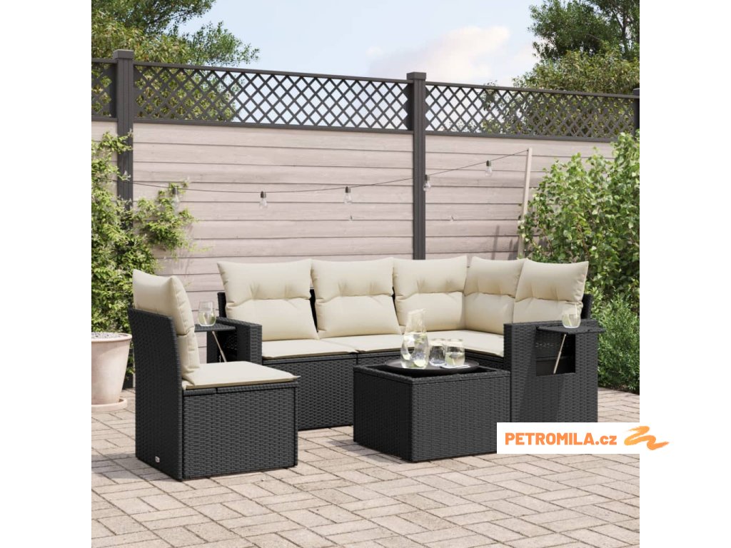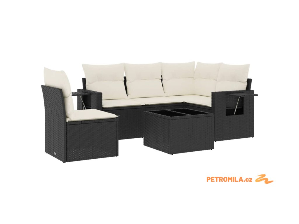 6dílná zahradní sedací souprava s poduškami černá polyratan