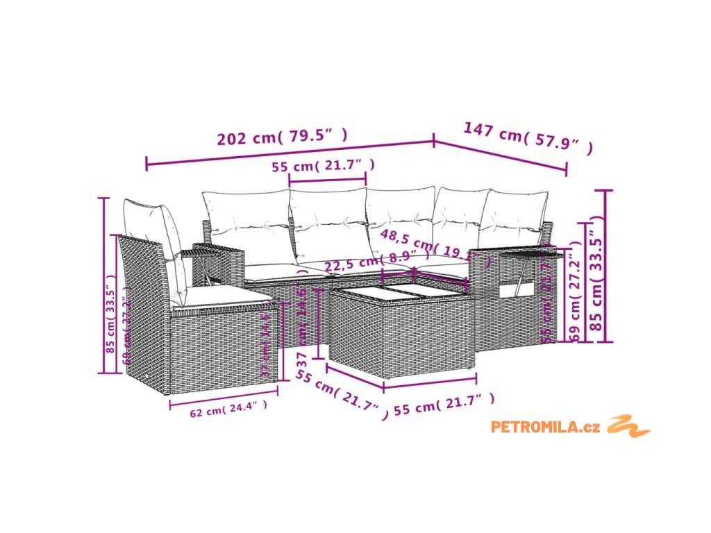 Tato zahradní sedací souprava je dokonalým doplňkem vaší zahrady, terasy nebo dvorku a poskytne vám pohodlné a příjemné místo, kde si můžete povídat s rodinou a přáteli nebo jen tak odpočívat a užívat si pobyt venku.