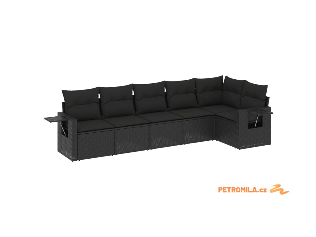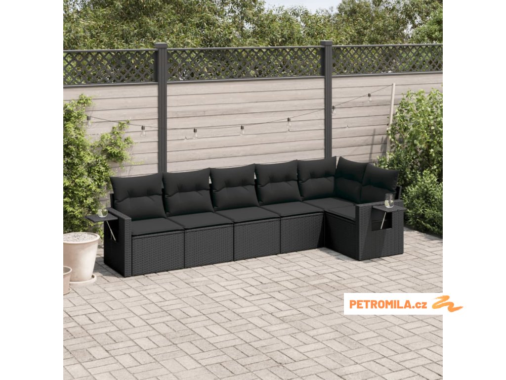 6dílná zahradní sedací souprava s poduškami černá polyratan