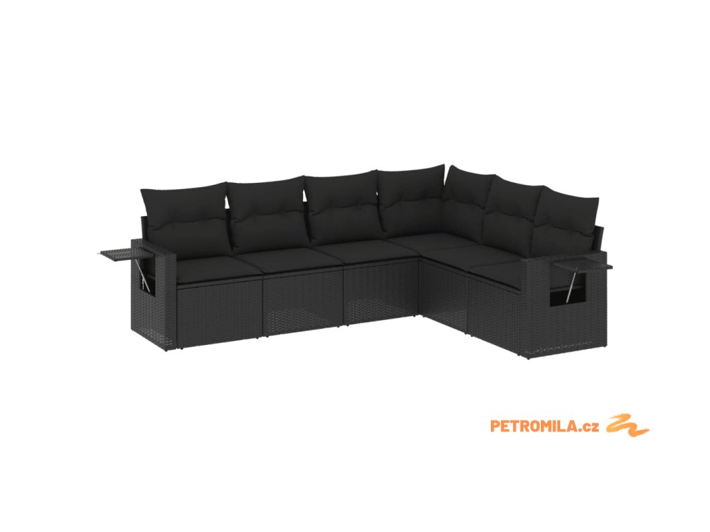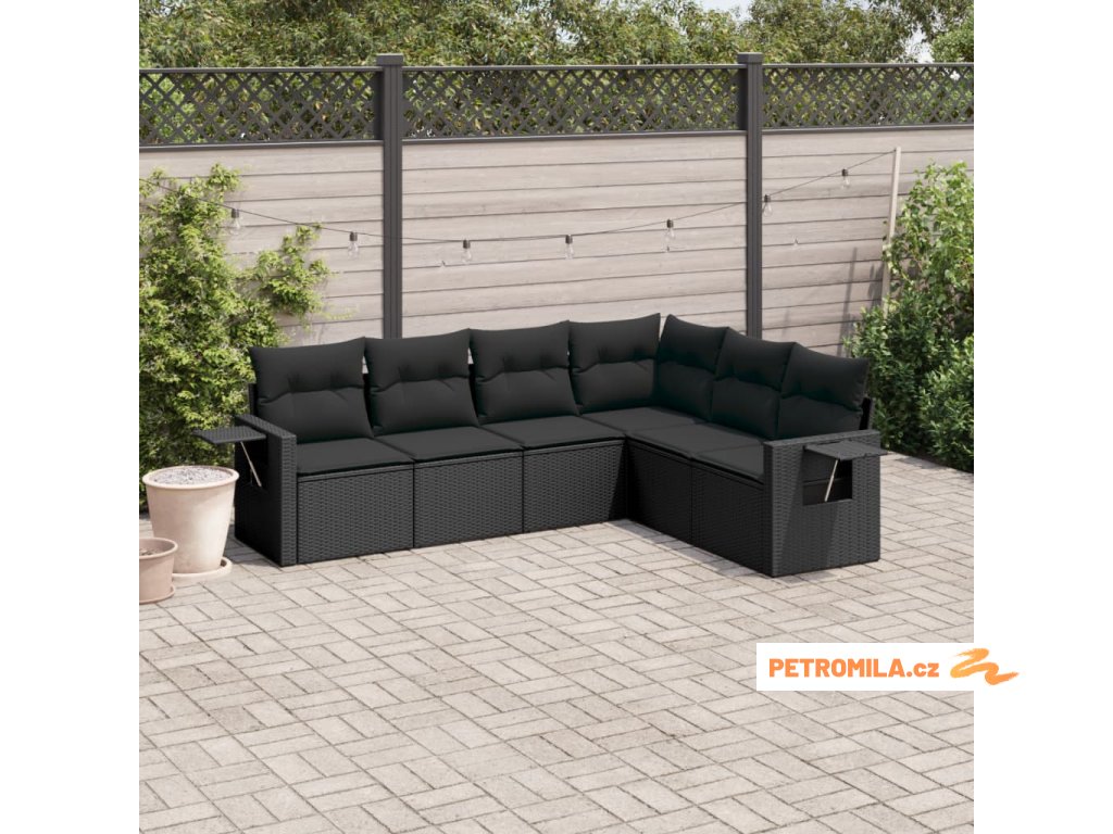 6dílná zahradní sedací souprava s poduškami černá polyratan