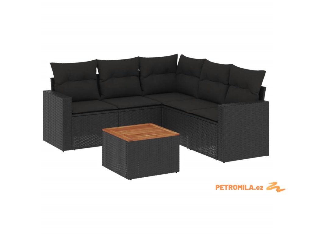 6dílná zahradní sedací souprava s poduškami černá polyratan