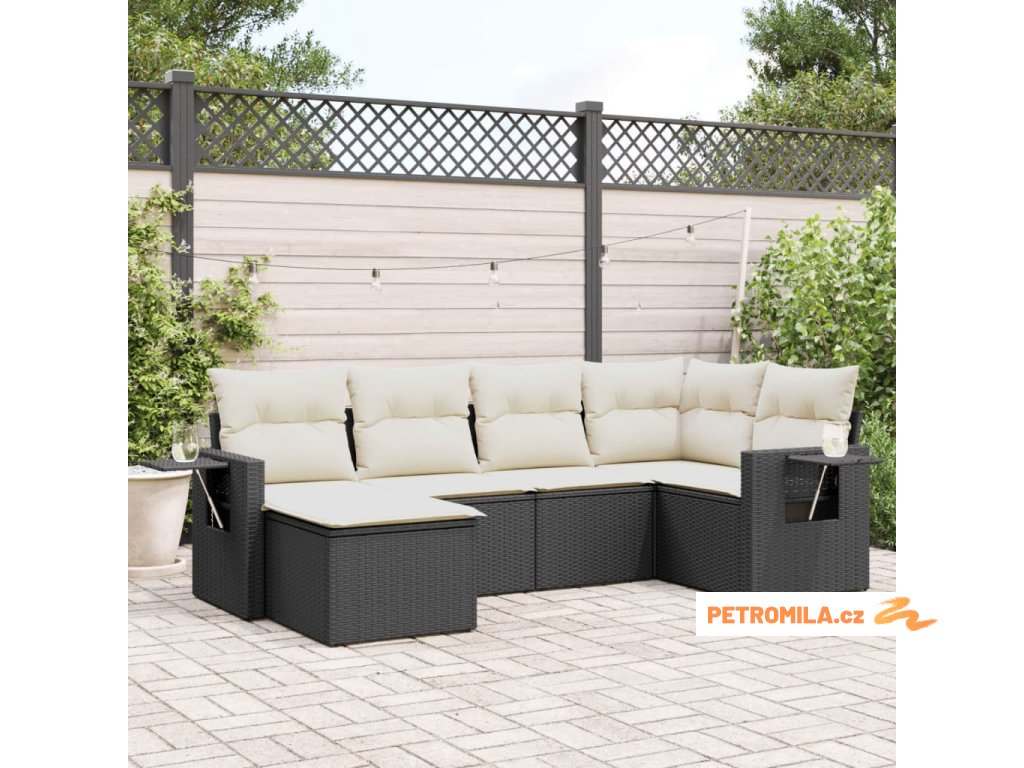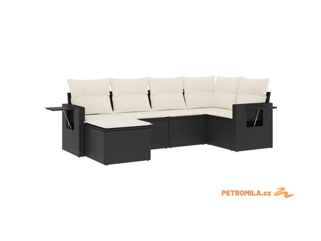 6dílná zahradní sedací souprava s poduškami černá polyratan