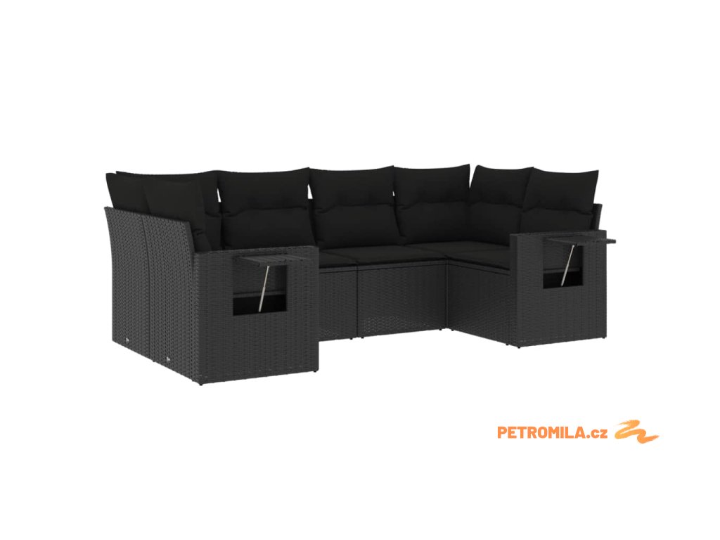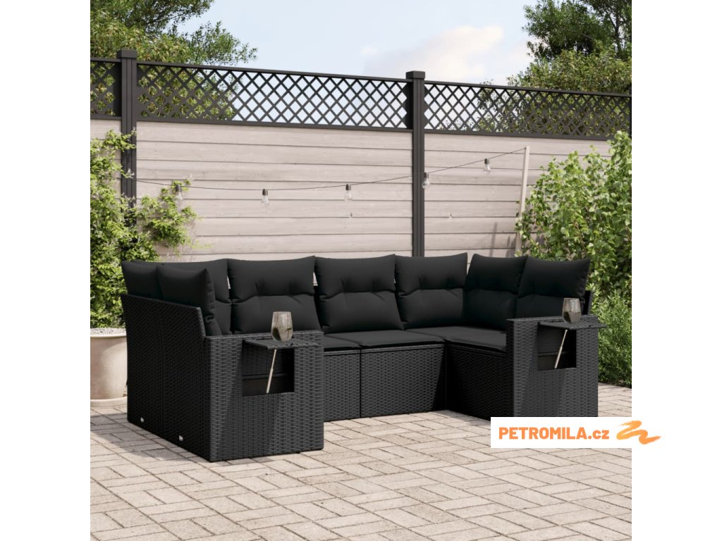6dílná zahradní sedací souprava s poduškami černá polyratan