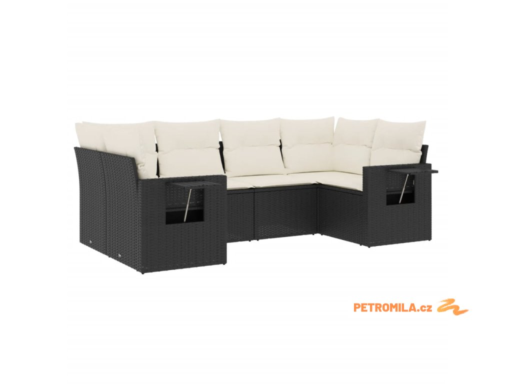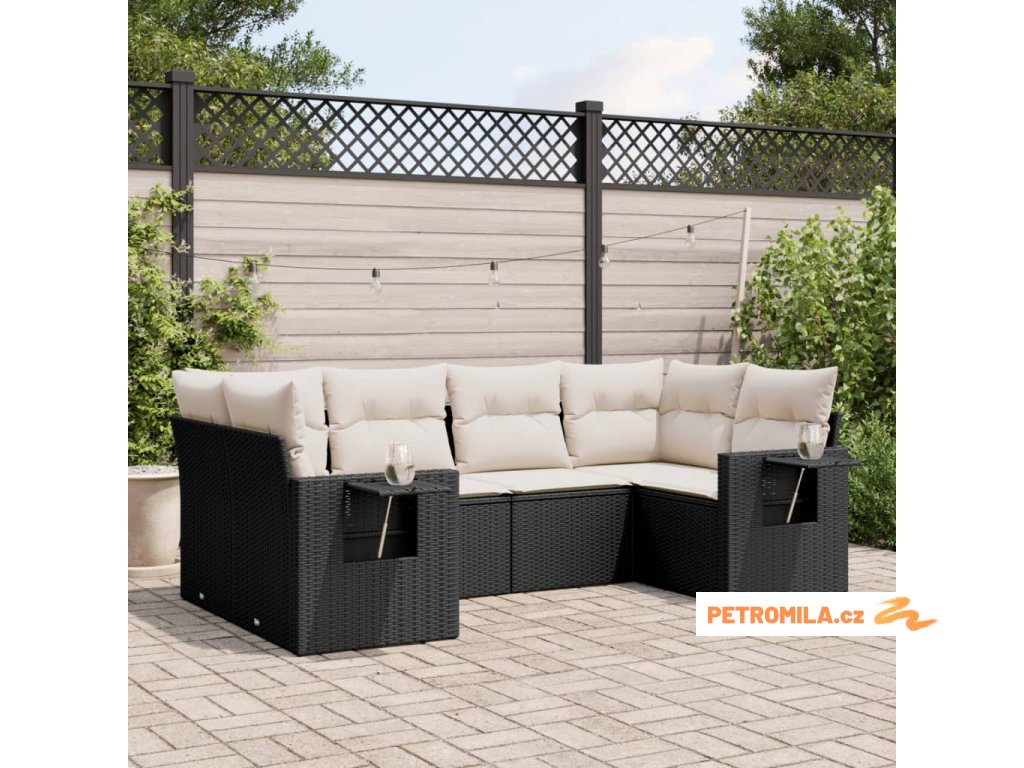 6dílná zahradní sedací souprava s poduškami černá polyratan