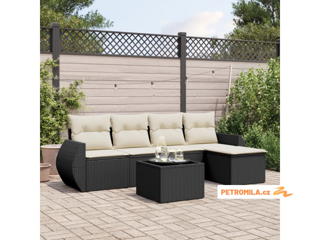 6dílná zahradní sedací souprava s poduškami černá polyratan
