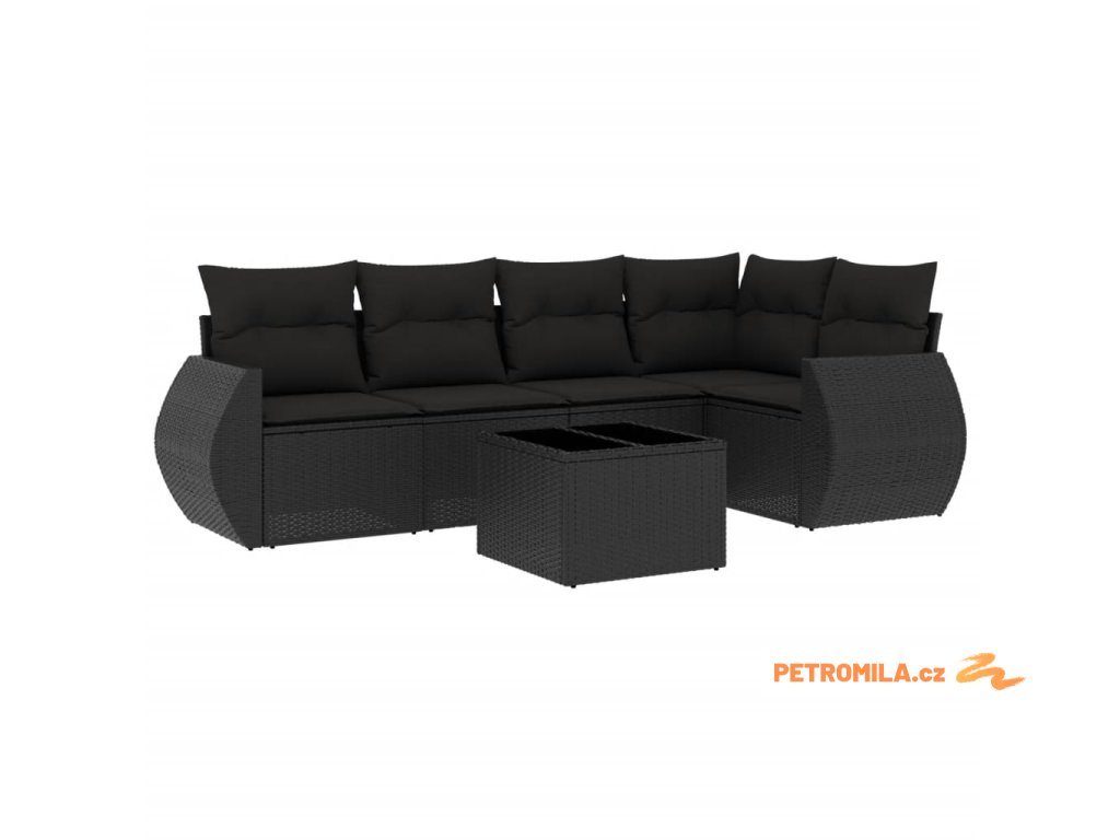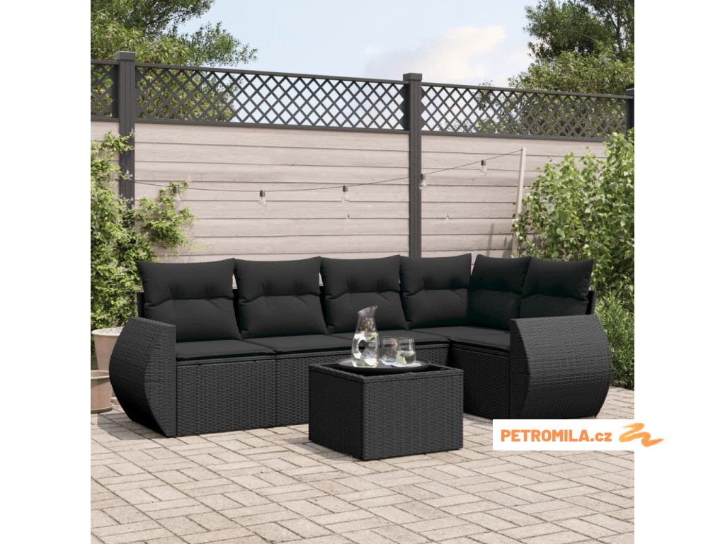 6dílná zahradní sedací souprava s poduškami černá polyratan