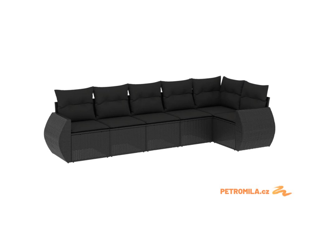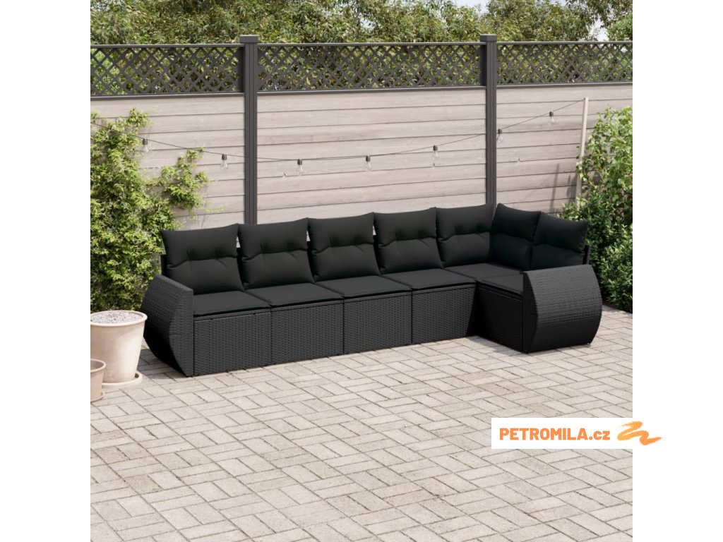 6dílná zahradní sedací souprava s poduškami černá polyratan
