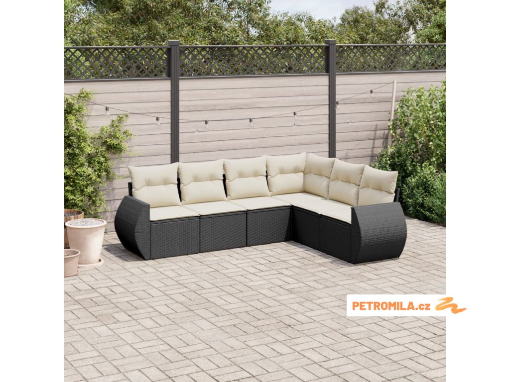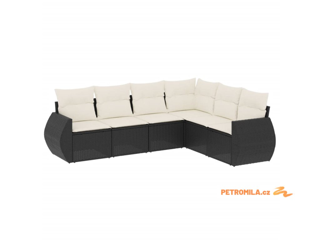 6dílná zahradní sedací souprava s poduškami černá polyratan