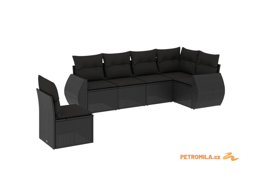 6dílná zahradní sedací souprava s poduškami černá polyratan