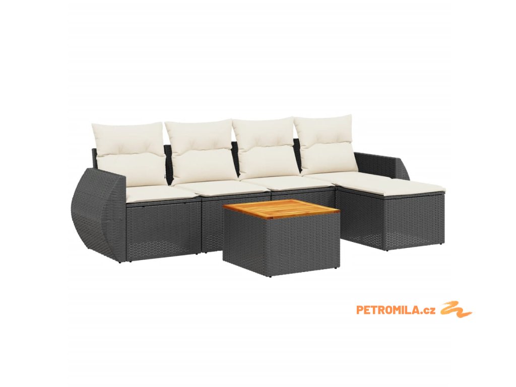6dílná zahradní sedací souprava s poduškami černá polyratan
