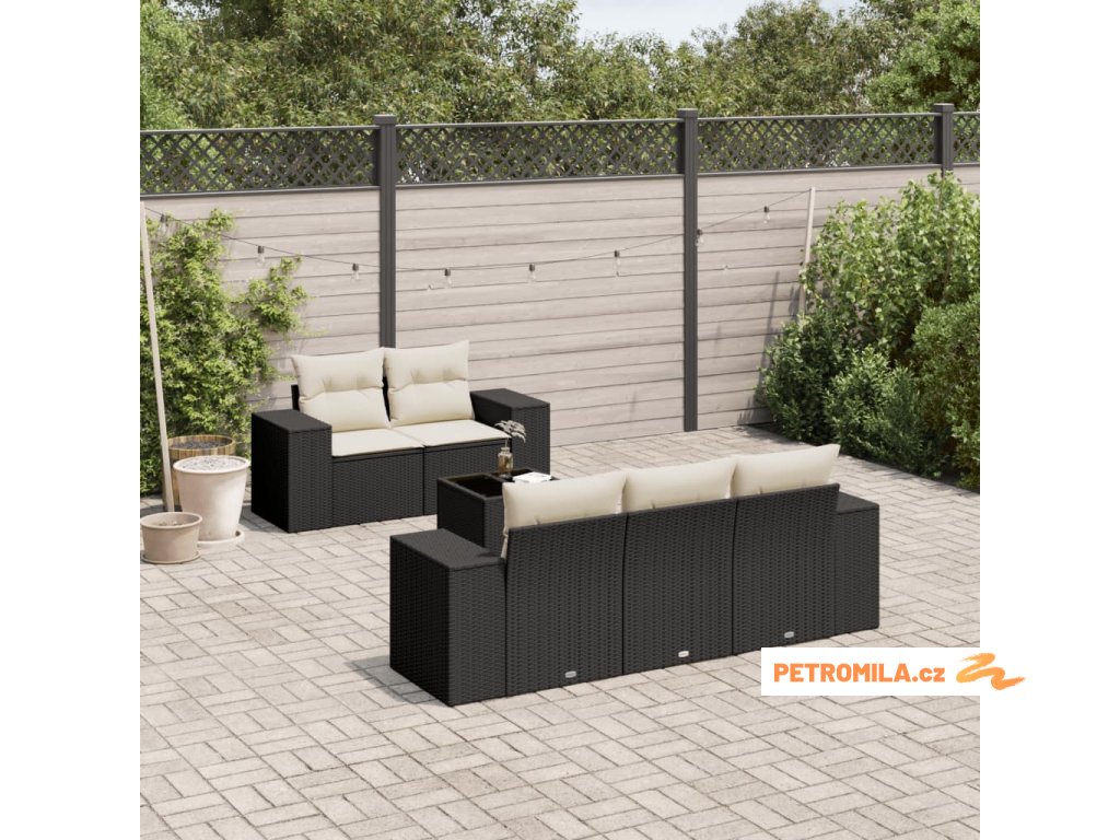 6dílná zahradní sedací souprava s poduškami černá polyratan