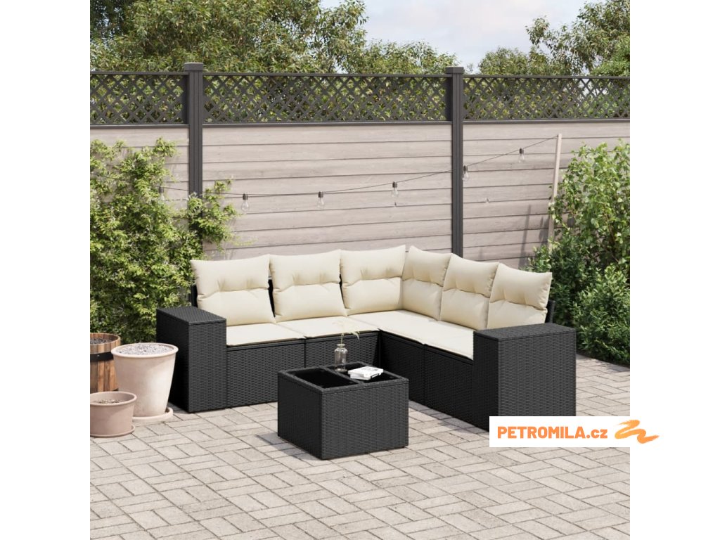 6dílná zahradní sedací souprava s poduškami černá polyratan