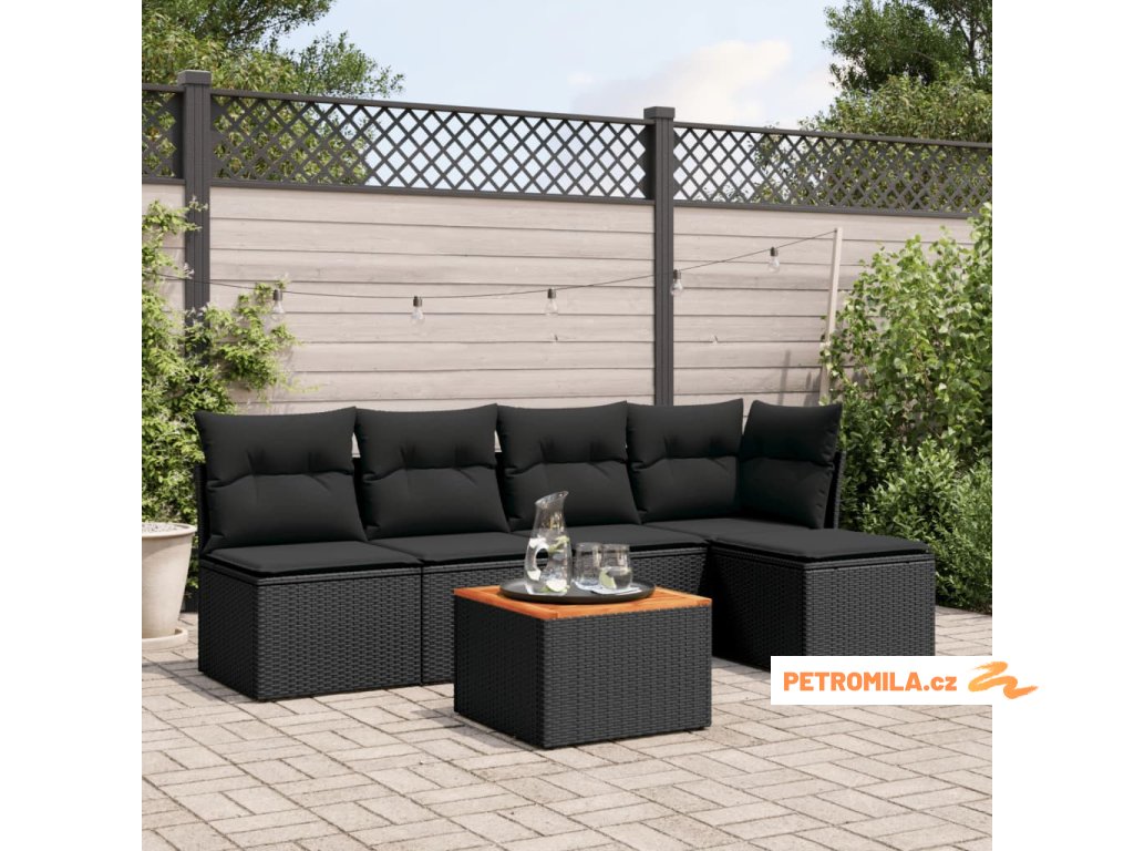 6dílná zahradní sedací souprava s poduškami černá polyratan