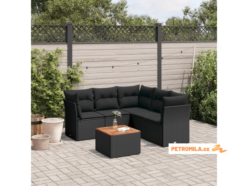 6dílná zahradní sedací souprava s poduškami černá polyratan
