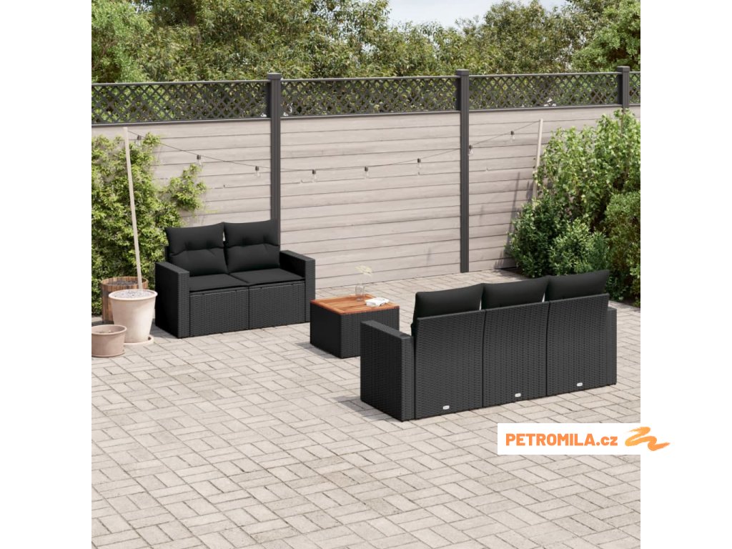 6dílná zahradní sedací souprava s poduškami černá polyratan