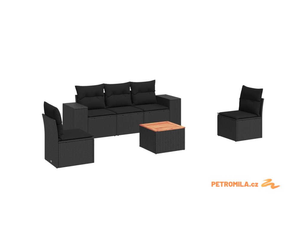 6dílná zahradní sedací souprava s poduškami černá polyratan
