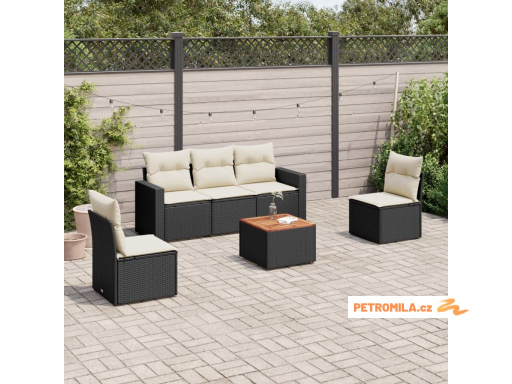 6dílná zahradní sedací souprava s poduškami černá polyratan
