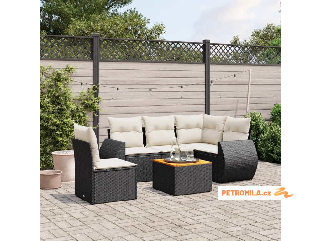6dílná zahradní sedací souprava s poduškami černá polyratan
