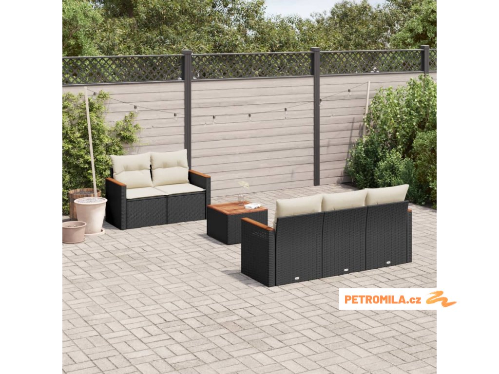 6dílná zahradní sedací souprava s poduškami černá polyratan