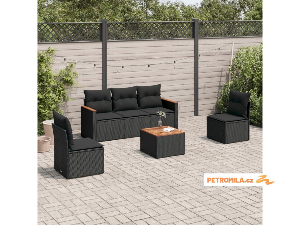 6dílná zahradní sedací souprava s poduškami černá polyratan