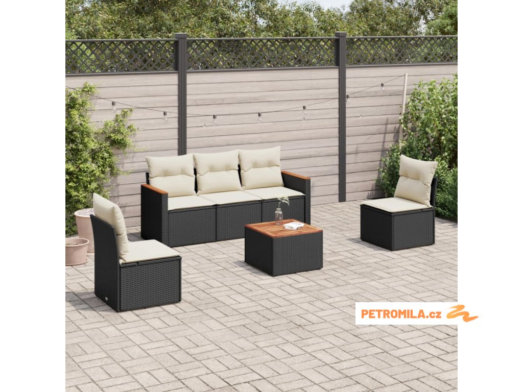 6dílná zahradní sedací souprava s poduškami černá polyratan